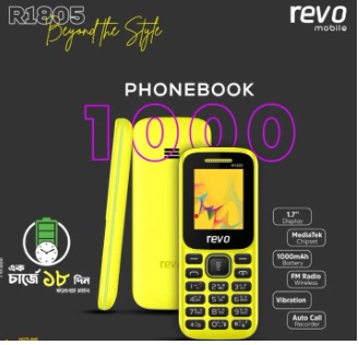 1.77” Display, Dual SIM dual Standby, MTK Chipset, 1000mAh Li-ion Battery, 2030 Speaker with loud sound, Vibration, Handy Looking, Wireless FM Radio with Record, Bluetooth, 3.5mm Audio port, 0 Key power saving mode, Memory card supported, Blacklist, Auto call recorder, Speed dial, Image viewer, Video Player, Audio Player, Sound recorder, Alarm, Calculator, Calendar, Torch-light, Stopwatch, Games, Revo fun, Privacy and Security, Mobile tracker.