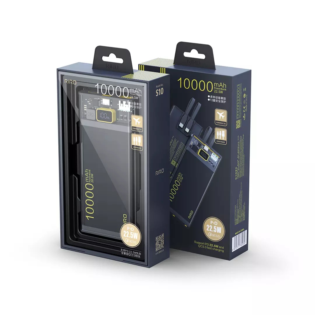 RIRO S10 10000mah Lighting cable output: 5V/2.4A Multi-port simultaneous output: 5V/3A (MAX)